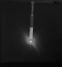 The above shows a singular tube with a light capsule inside, performing simple rotations where the light is illuminated only in specific orientation.